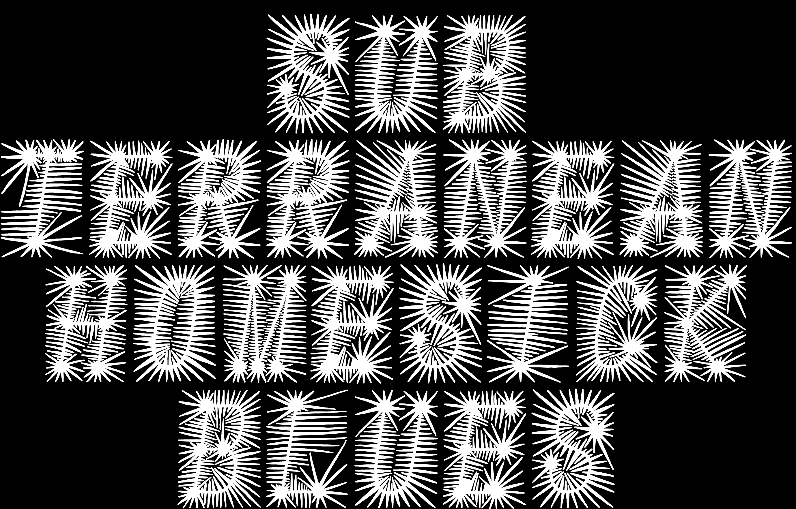 intricate and almost psychedelic linework. It is based on multiple typographic experiments, out of which