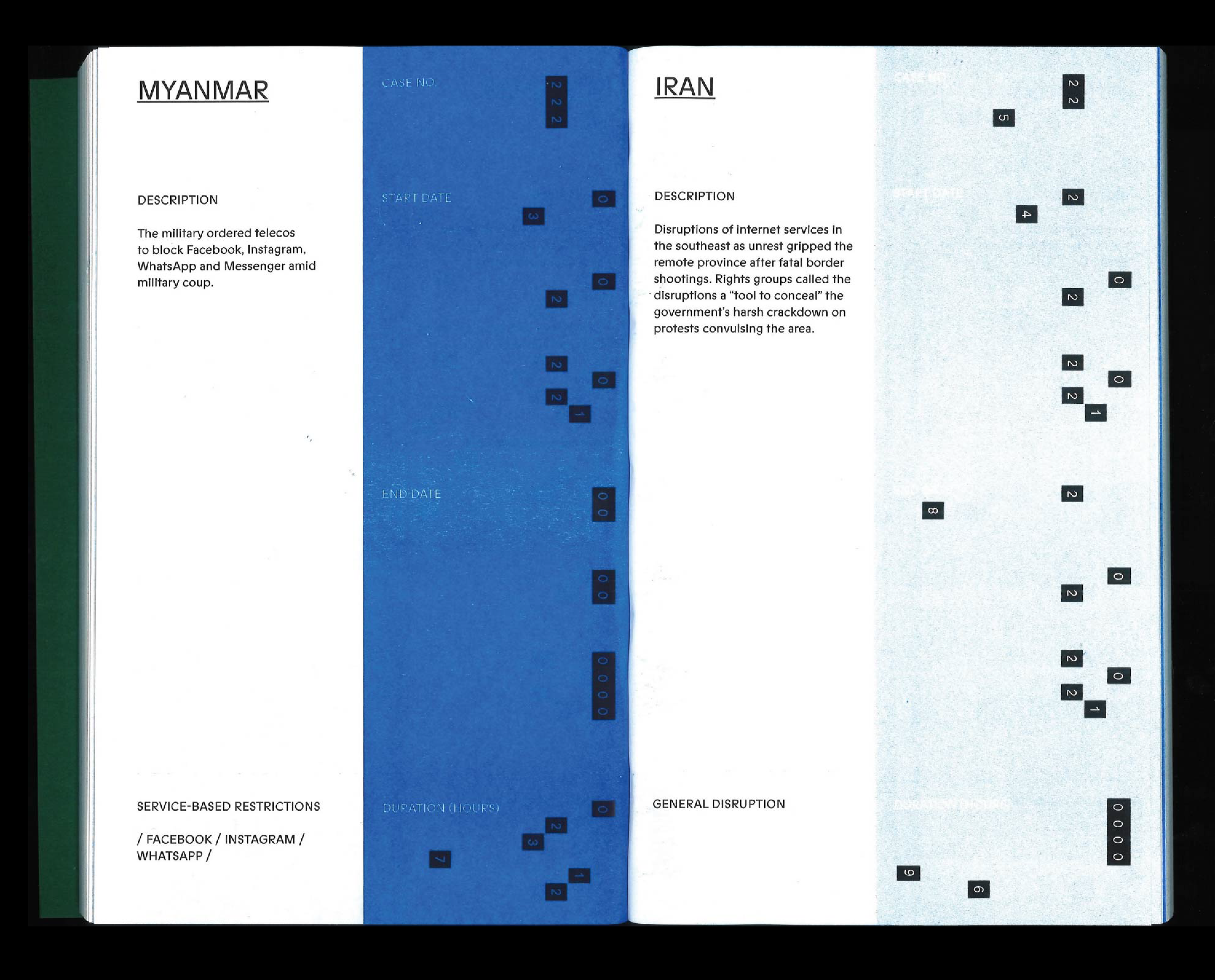 colour of the cards is darker in cases where the internet was blocked for longer. The book becomes a